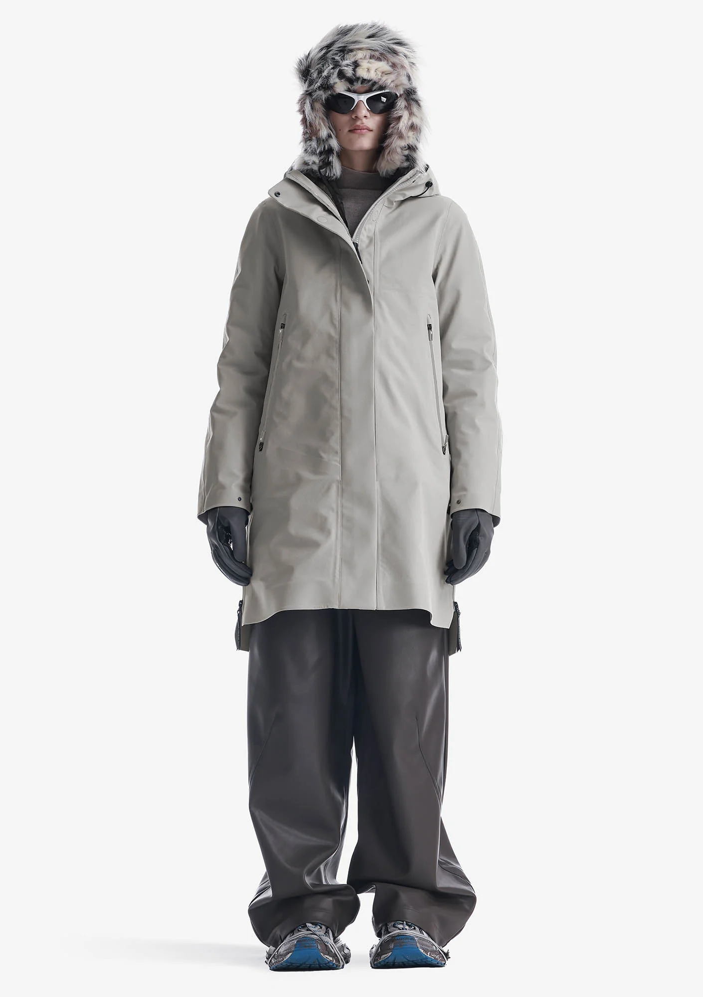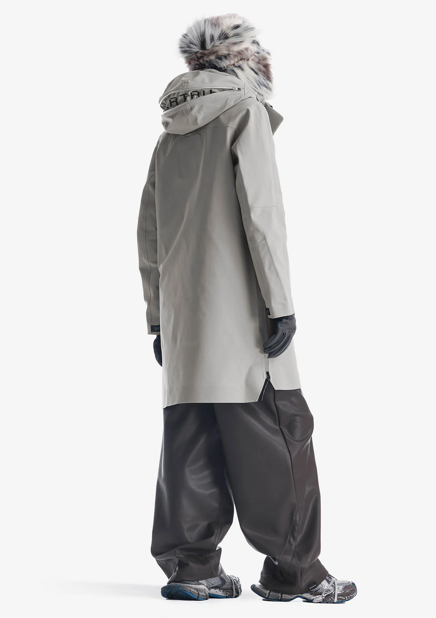 Износостойкий эластичный нейлон с матовой поверхностью устойчив к разрывам и адаптируется к движениям. Трёхслойная конструкция с мембранным покрытием TPU и водоотталкивающей пропиткой без фторуглеродов (PFC-free DWR) защищает от ветра и влаги. 85 % нейлон, 15 % спандекс.