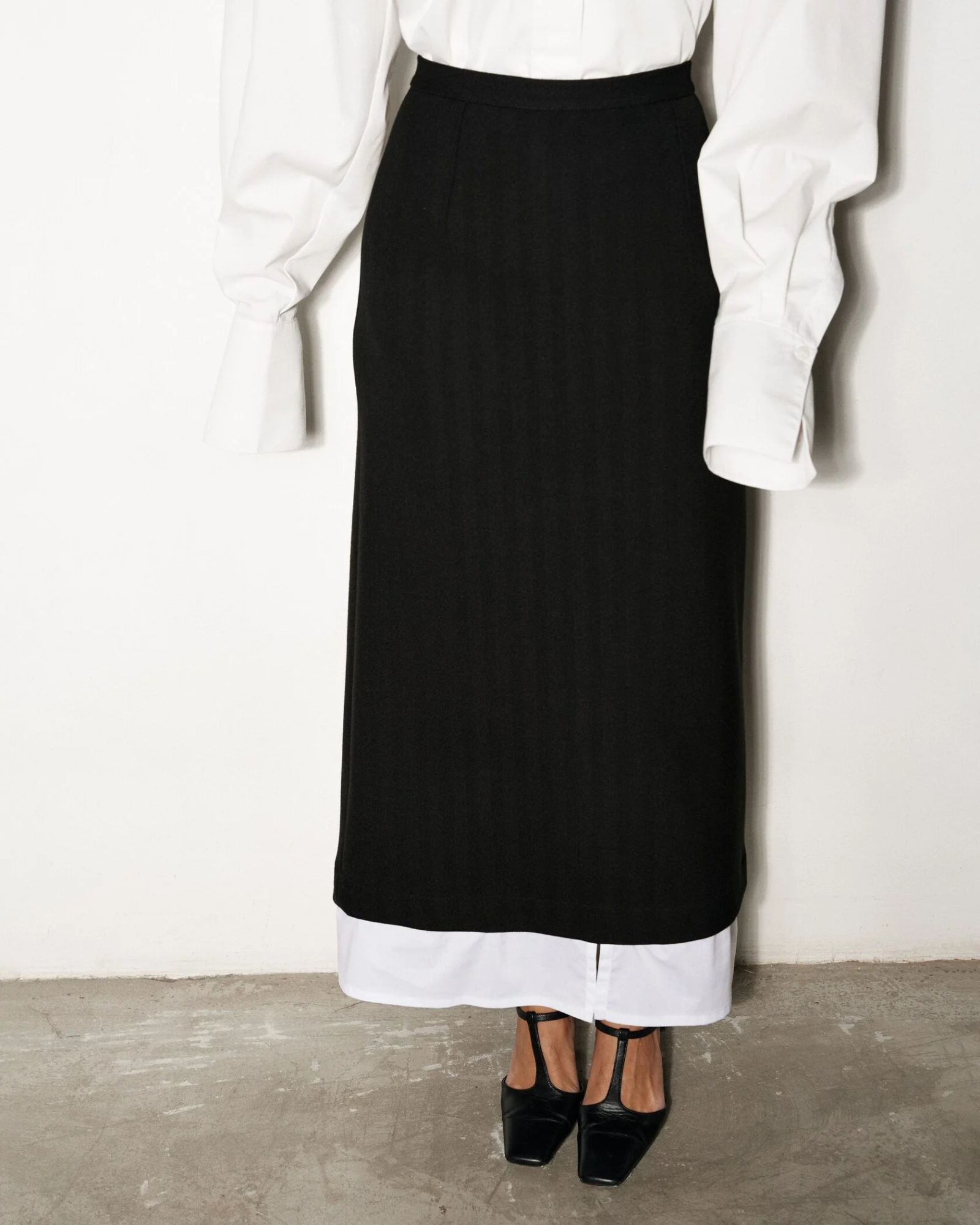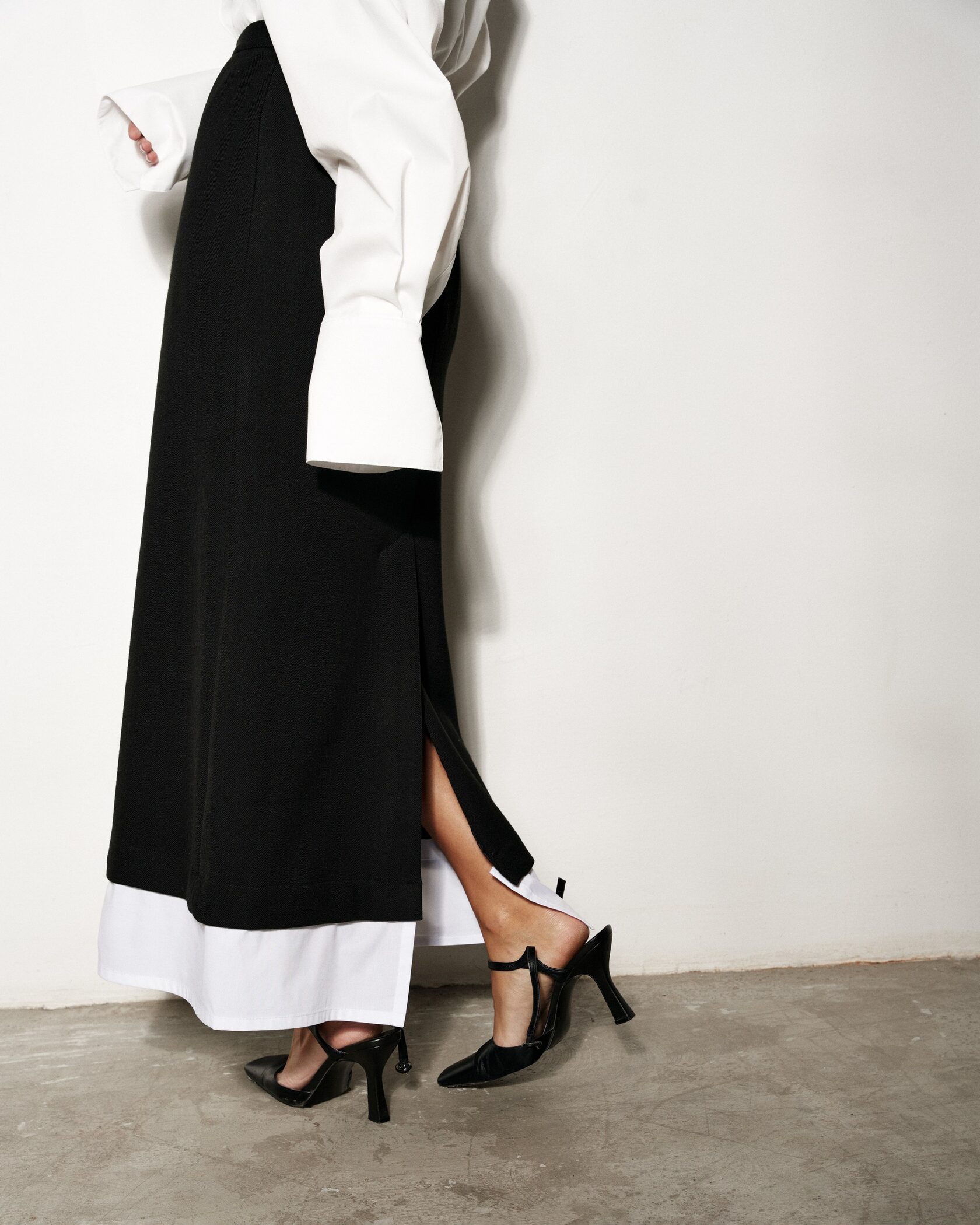 Уникальная особенность юбки — отстегивающийся низ, что позволяет легко трансформировать модель в более формальный вариант для разных случаев.