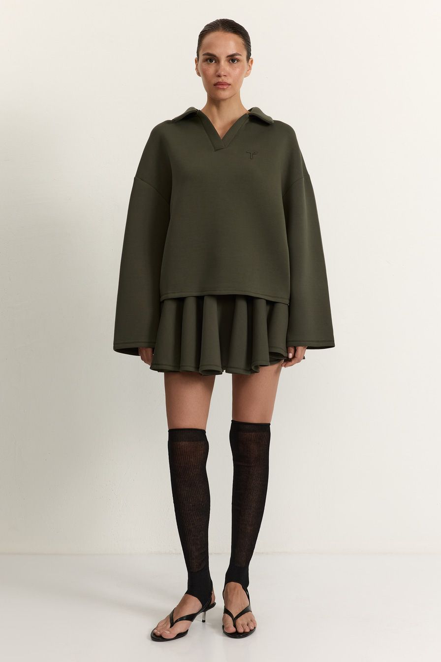 «Для повседневного лука в спортивном стиле сочетайте юбку с оверсайз-лонгсливом из комплекта, гетрами, кедами и объемным бомбером или ветровкой».