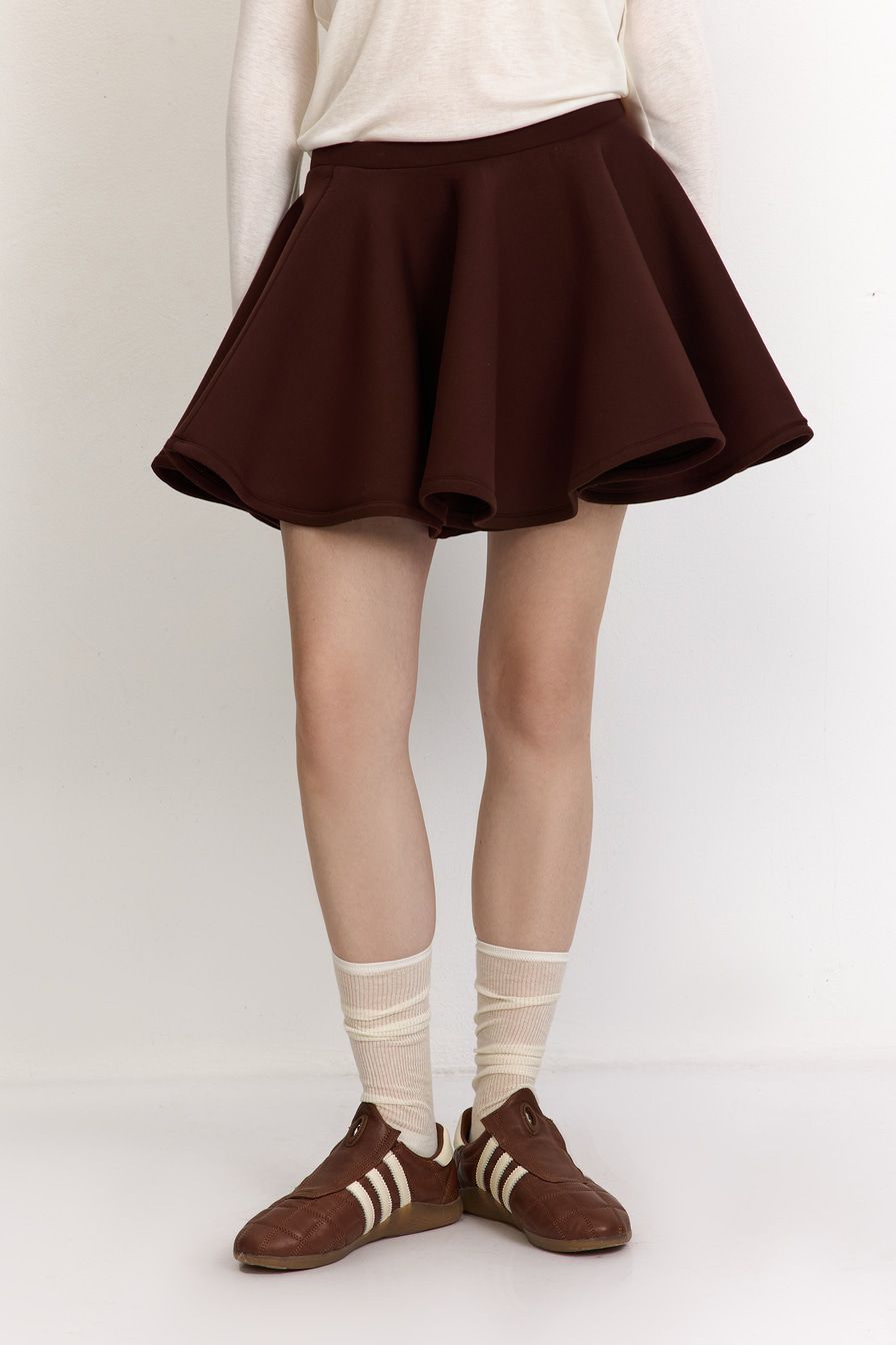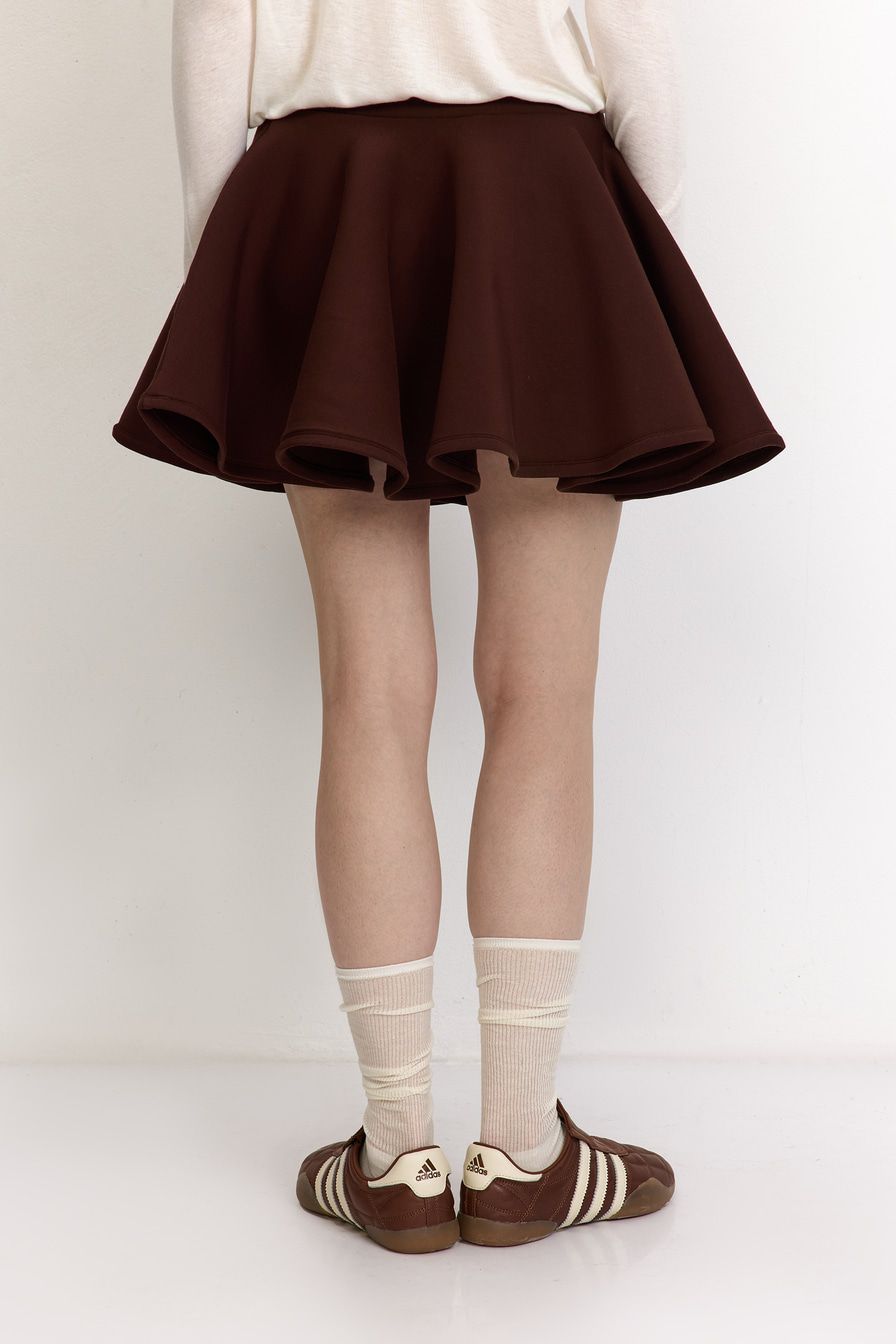 Трикотажная юбка-солнце с крупными складками выполнена из смесовой вискозы и декорирована вышивкой в виде логотипа бренда.