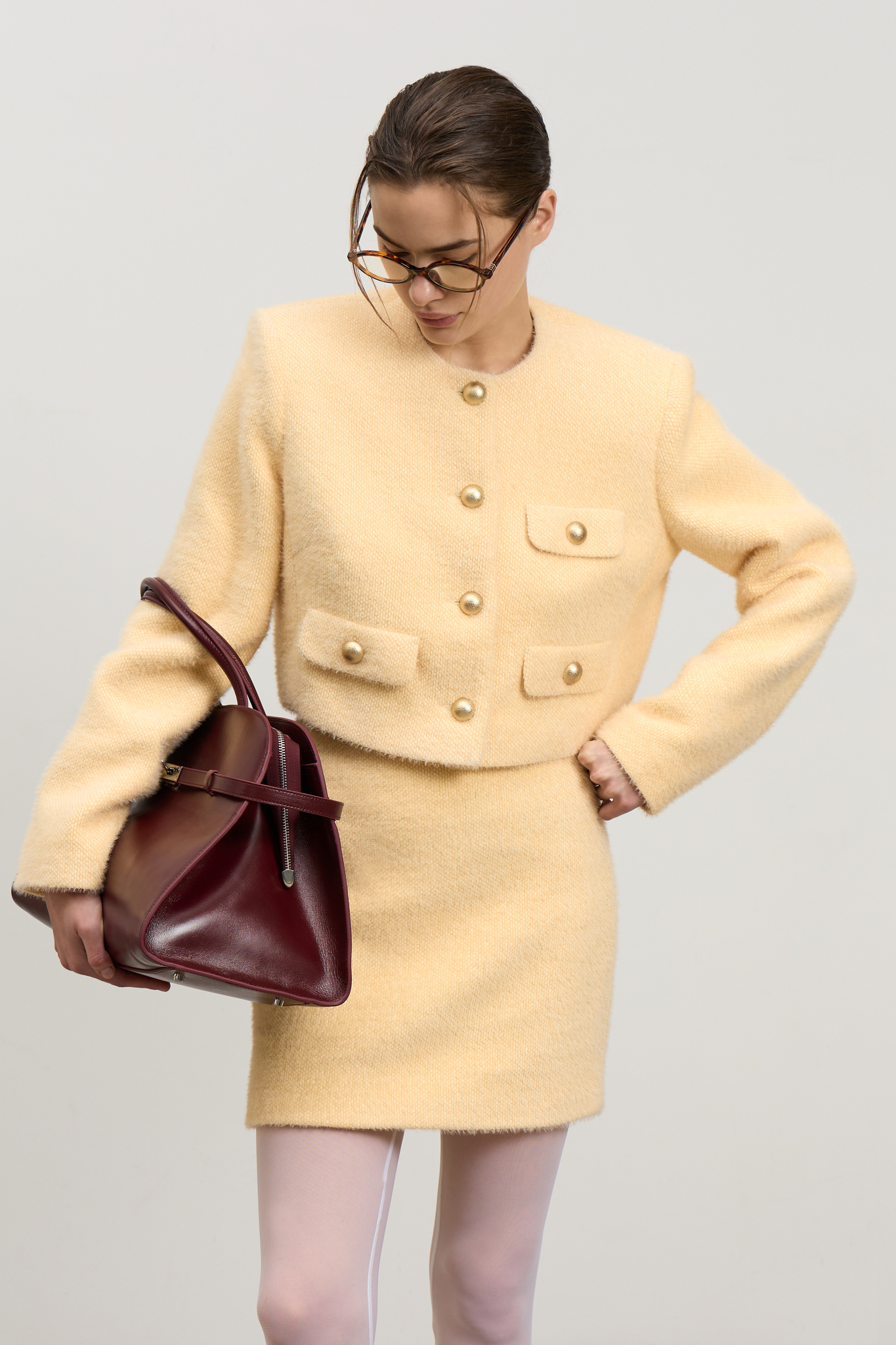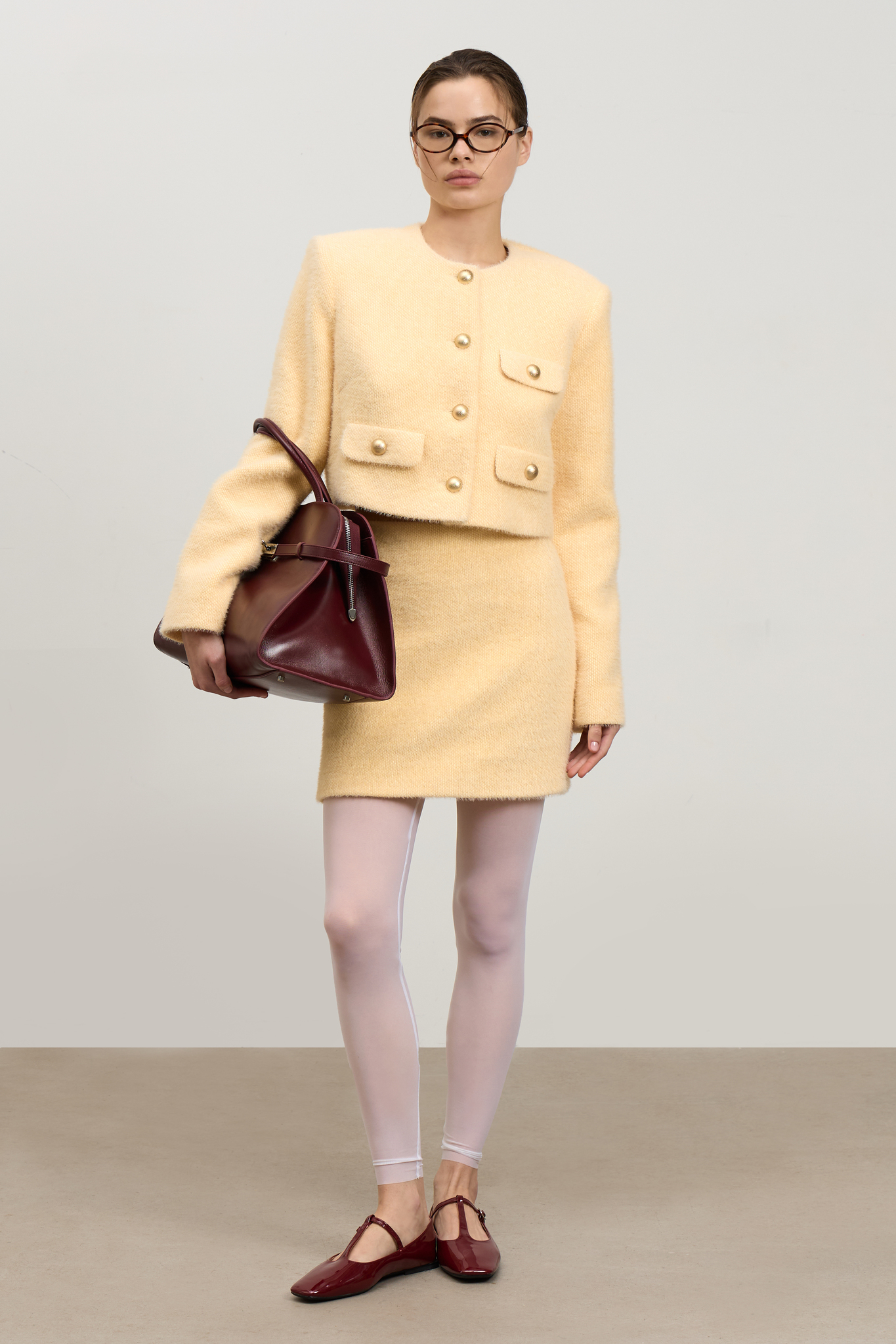 Яркая желтая юбочка из фактурного трикотажа – ваш стильный спутник в погожие дни! Элегантная длина мини подчеркнёт женственность фигуры, а сочетание шерсти и вискозы подарит комфорт даже в прохладную погоду.