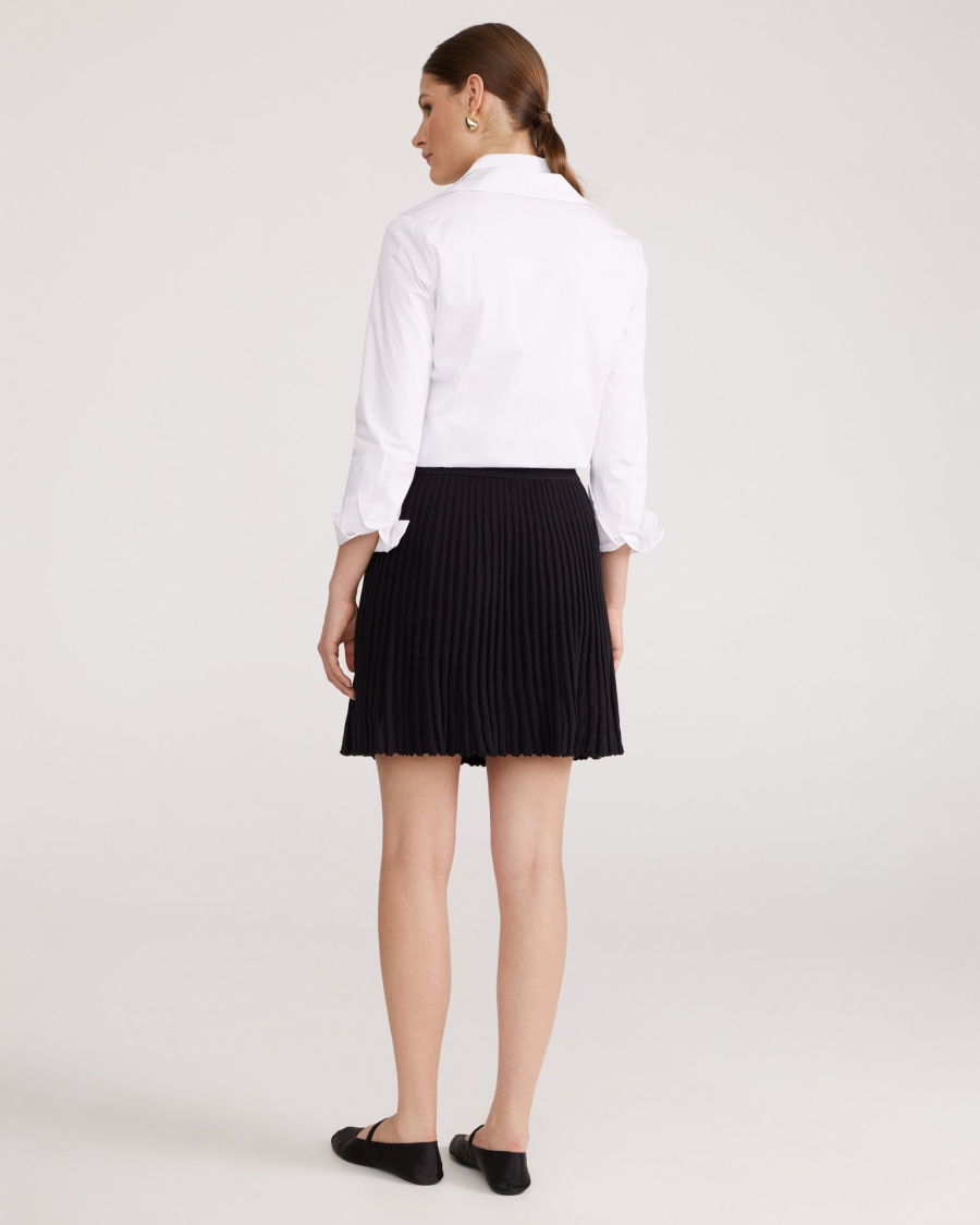 Плиссированная мини юбка с поясом-резинкой. Это базовая модель, с которой вы сможете создавать модные образы в любой сезон, играя пропорциями и аксессуарами. Можно сочетать ее с объемными укороченными свитерами, жакетами, рубашками, и подчеркивать талию широким ремнем. Параметры модели: рост 178 см, грудь 89 см, талия 66 см, бедра 92 см. Размер на модели: S.