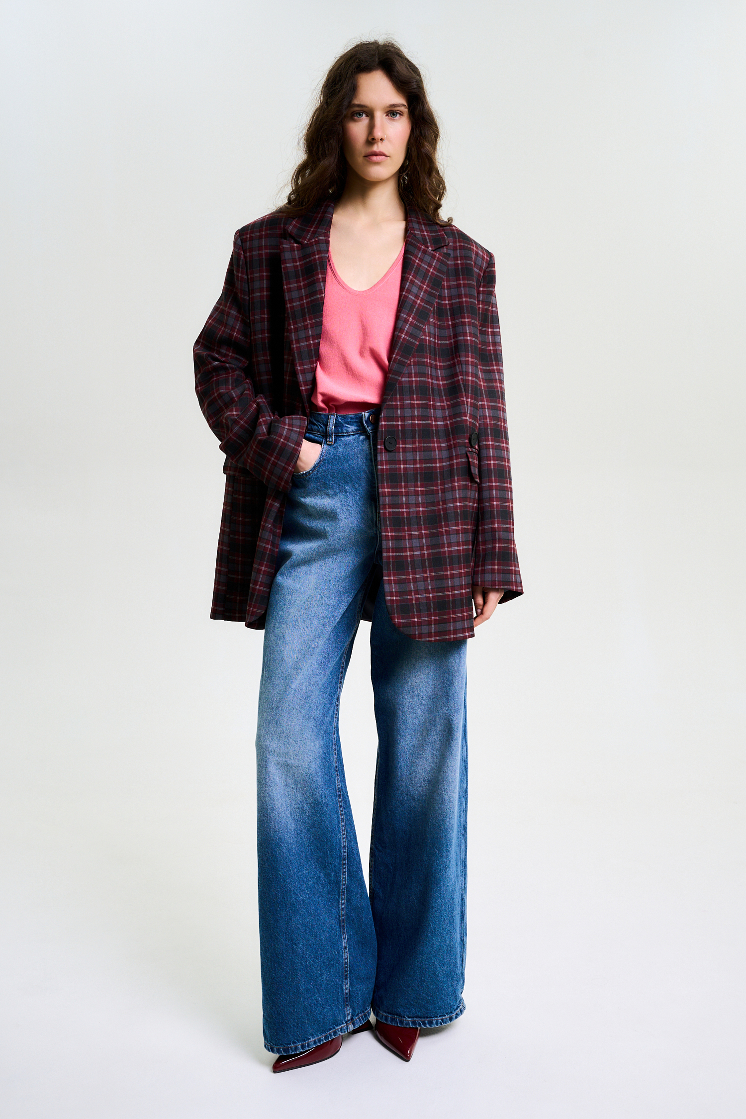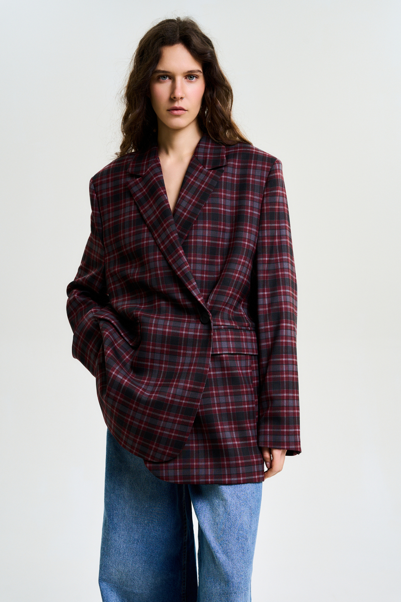 Пиджак объемный в клетку BURGUNDY