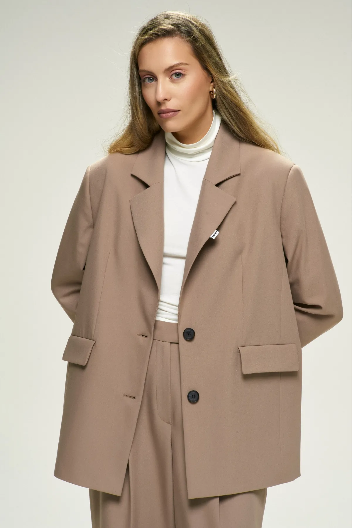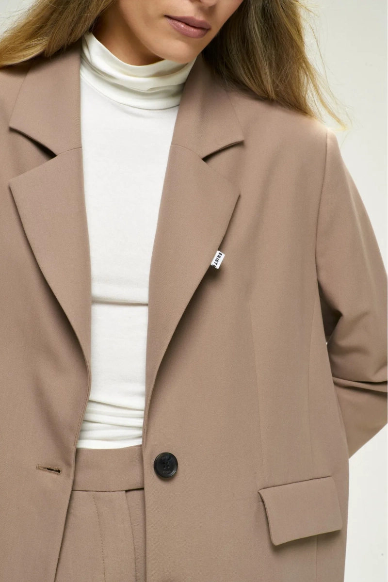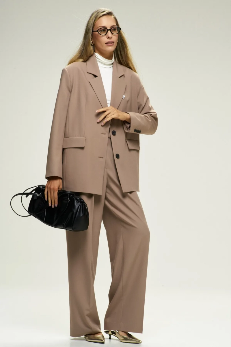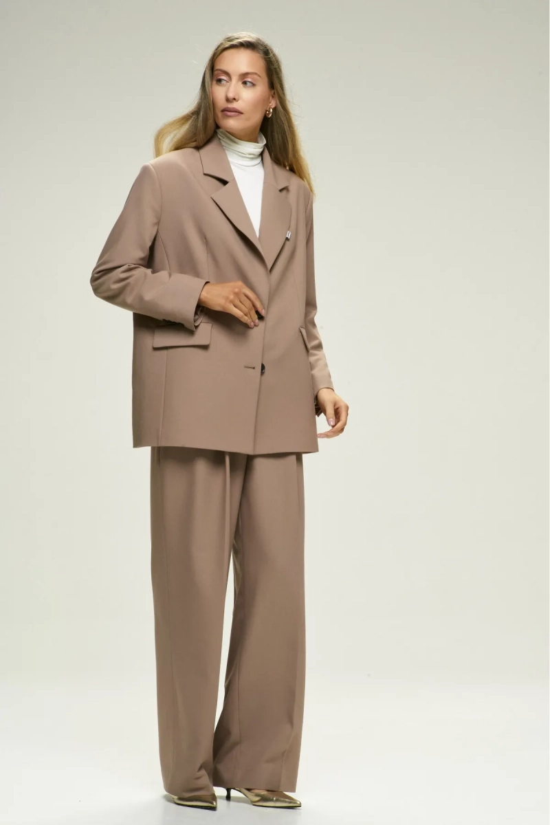 Жакет Classic с классическим кроем подчеркнет вашу утонченность и стиль. Силуэт жакета достаточно свободный, но в то же время не гипер-оверсайз. Он оснащен карманами с клапанами и традиционными лацканами, что придаёт ему строгий, но актуальный вид. Четкая линия плеч и обновленный крой делают этот жакет идеальным для создания как деловых, так и повседневных образов.