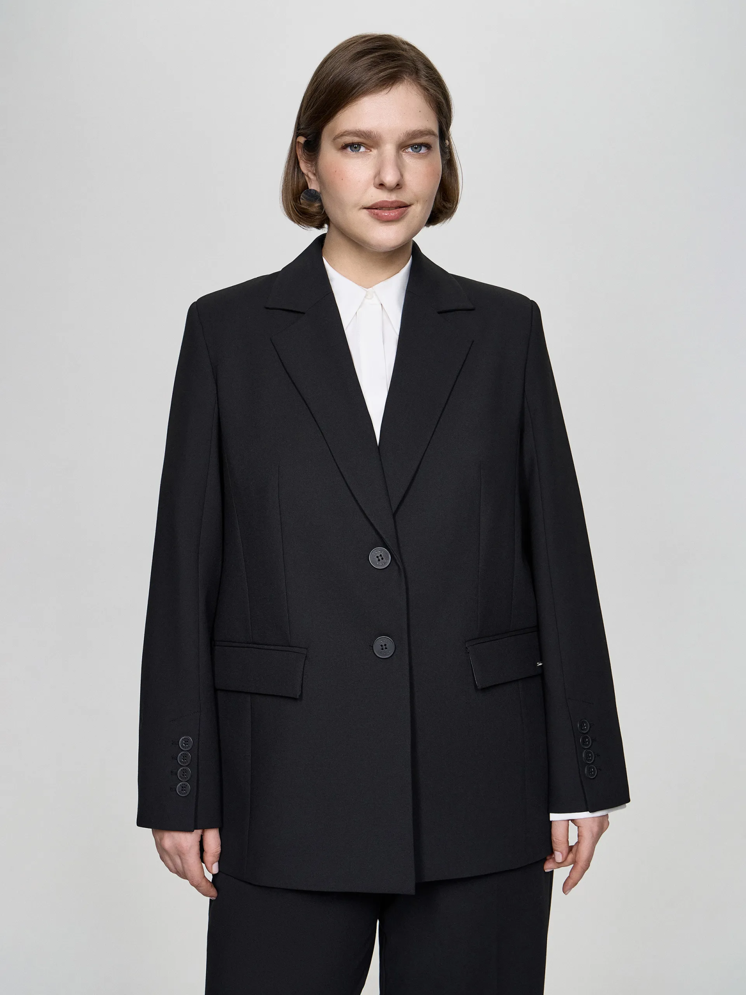 Nesto — классический жакет прямого кроя. Модель выполнена с акцентной спинкой в виде нахлеста двух деталей, именно за счет них жакет хорошо сидит и комфортен в течение целого дня. Декоративные строчки визуально вытягивают и стройнят силуэт. Классический черный оттенок, в котором выполнена модель, легко интегрировать в любой гардероб и подобрать стильные сочетания.