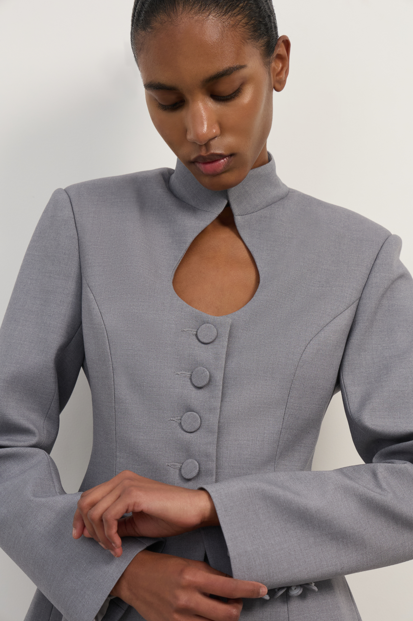 Элегантный приталенный жакет с глубоким вырезом «капля» подчеркнёт вашу фигуру и станет изюминкой гардероба! Изящная ткань подарит комфорт при носке, а стильный дизайн добавит уверенности и шарма. Удобен для повседневных образов и особых случаев – легко комбинируется с джинсами, юбками и платьями. Идеален как верхний слой в прохладную погоду.