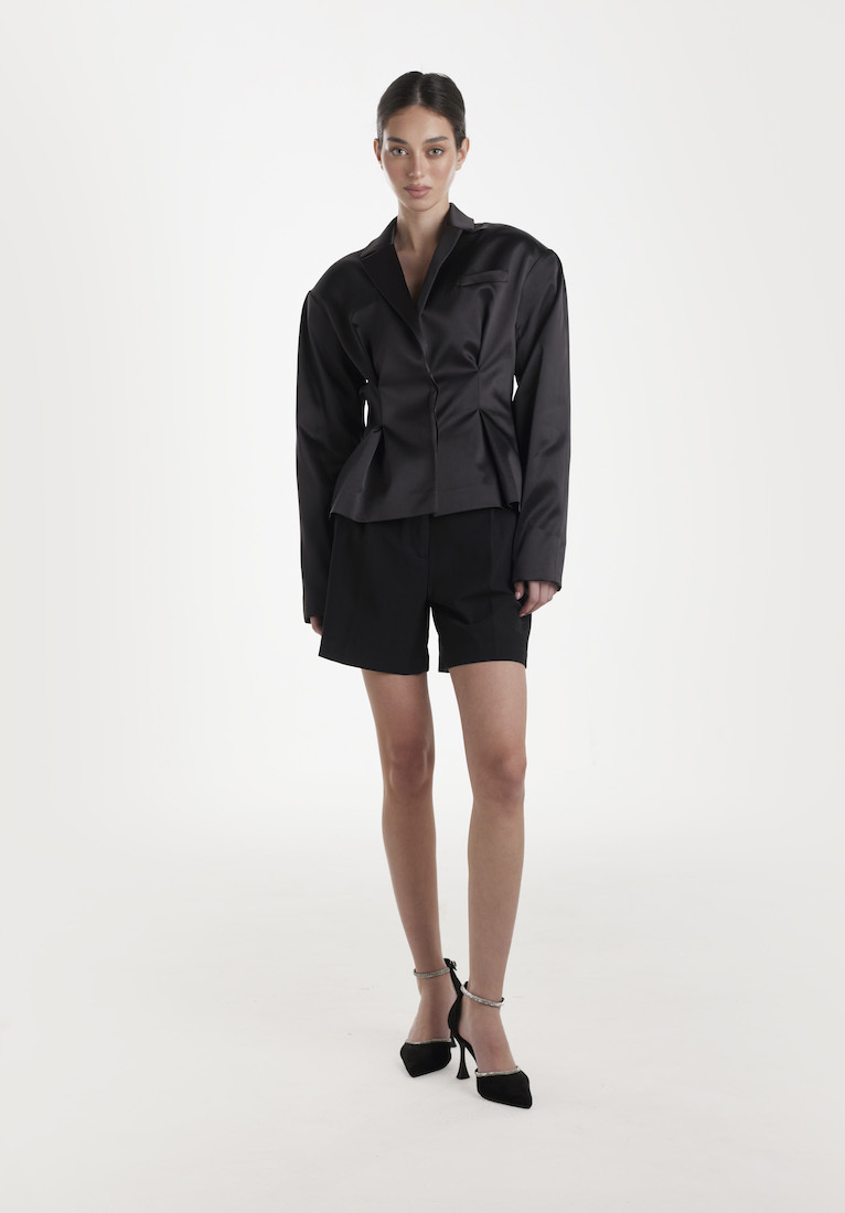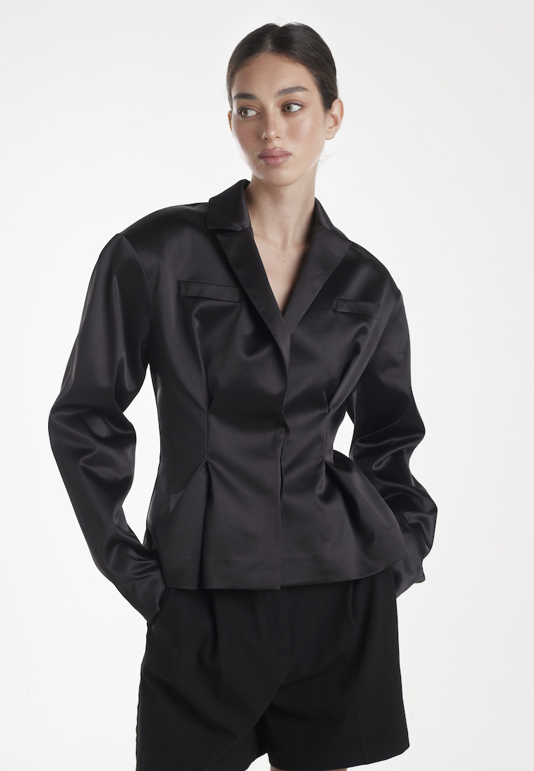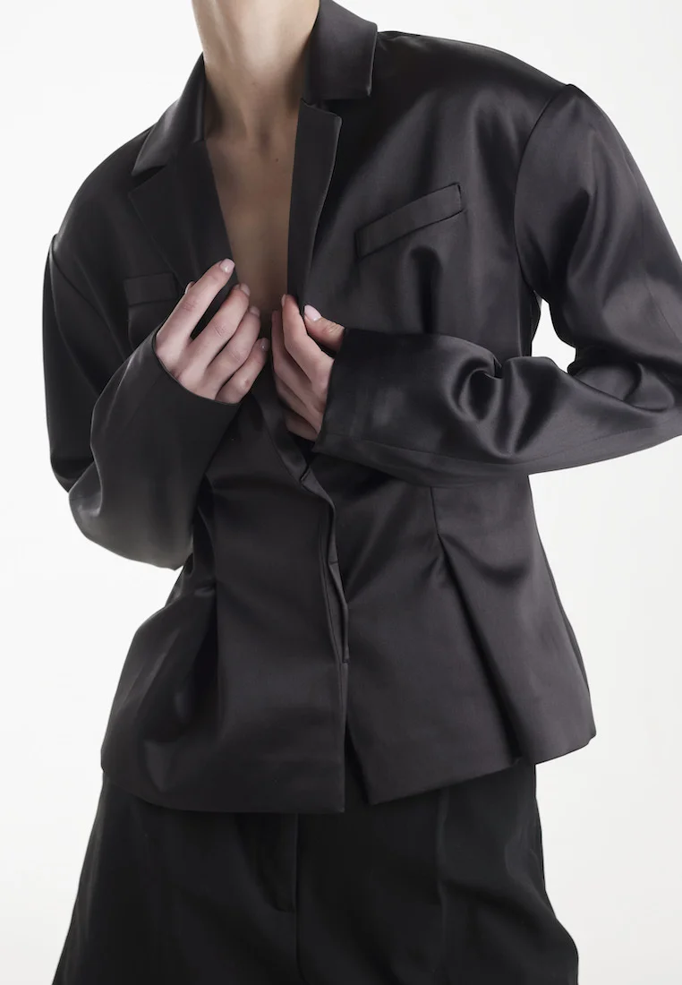 Жакет из шелка – это воплощение элегантности и смелости. Объёмные плечи, придают силуэту уверенность и драматизм.