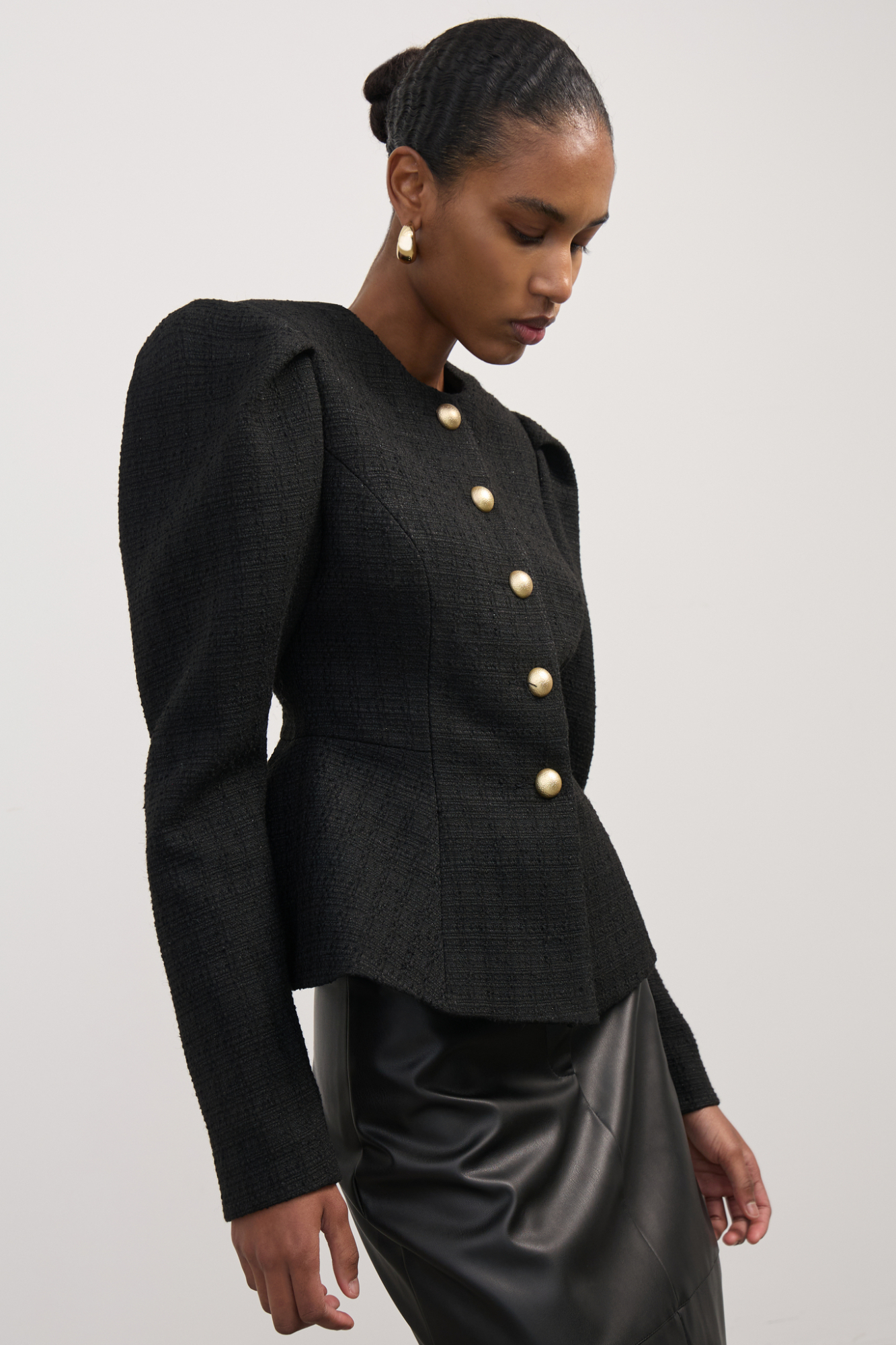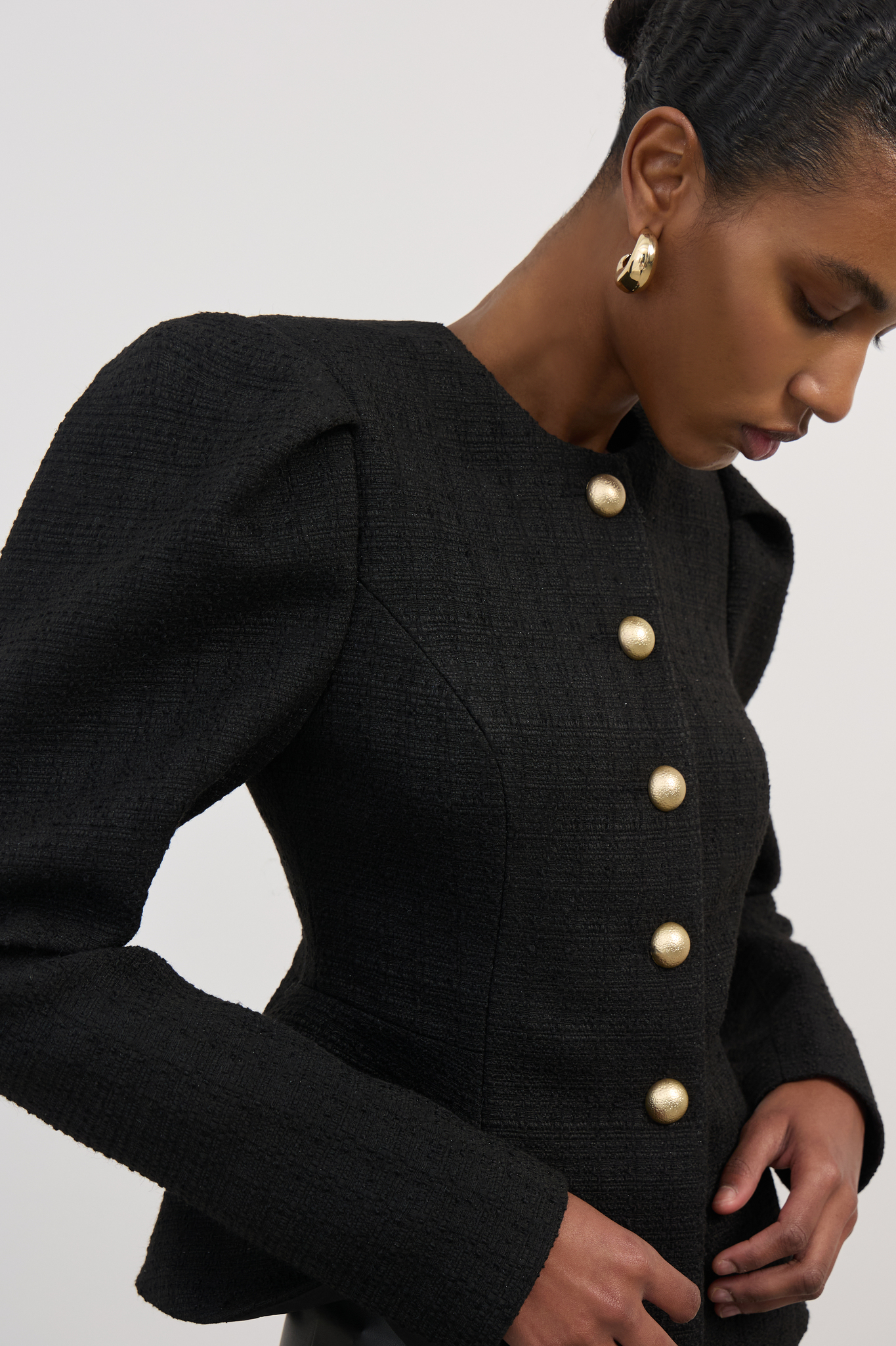 Погрузитесь в элегантность жакета с баской из благородного твида! Элегантная форма подчеркнёт вашу фигуру, а натуральные материалы – хлопок и лен подарят комфорт весь день. Подкладка из мягкой вискозы обеспечивает приятное касание кожи.