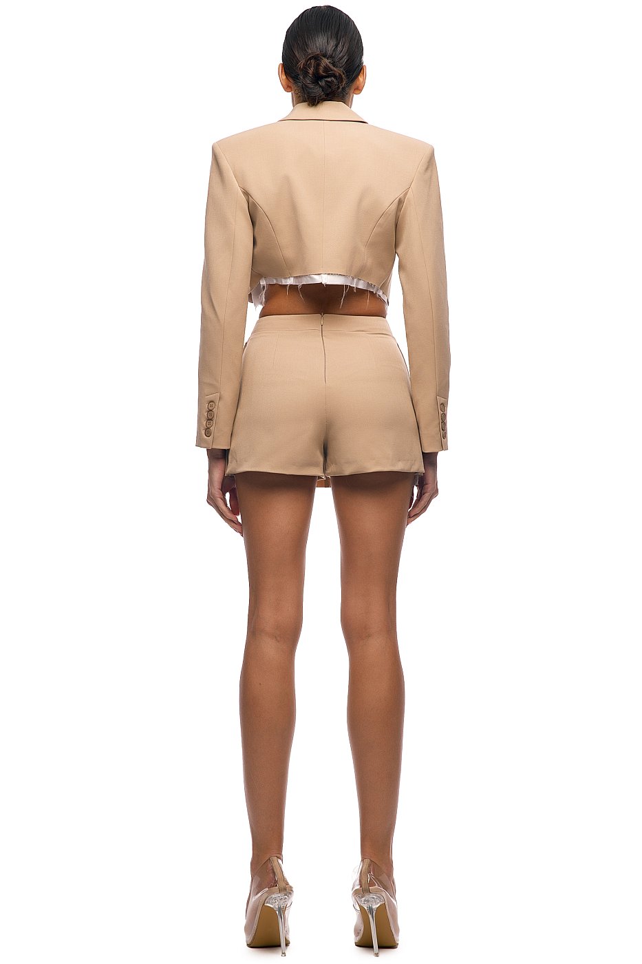 Укороченный жакет в бежевом цвете — идеальный выбор для создания стильного и непринуждённого образа. Необработанный низ добавляет изделию оригинальности и лёгкости. Жакет станет отличным дополнением к вашему гардеробу и позволит выразить индивидуальность.