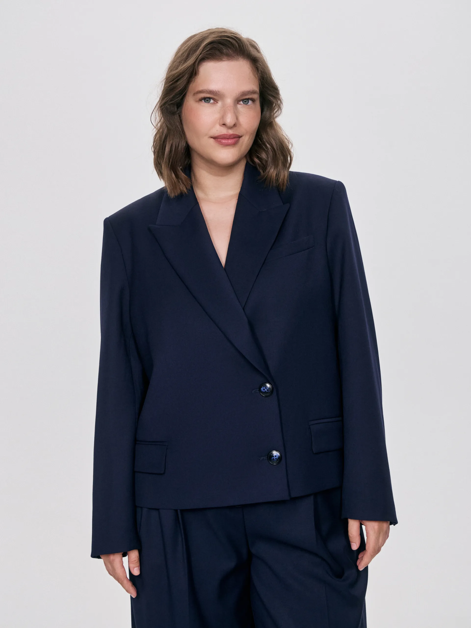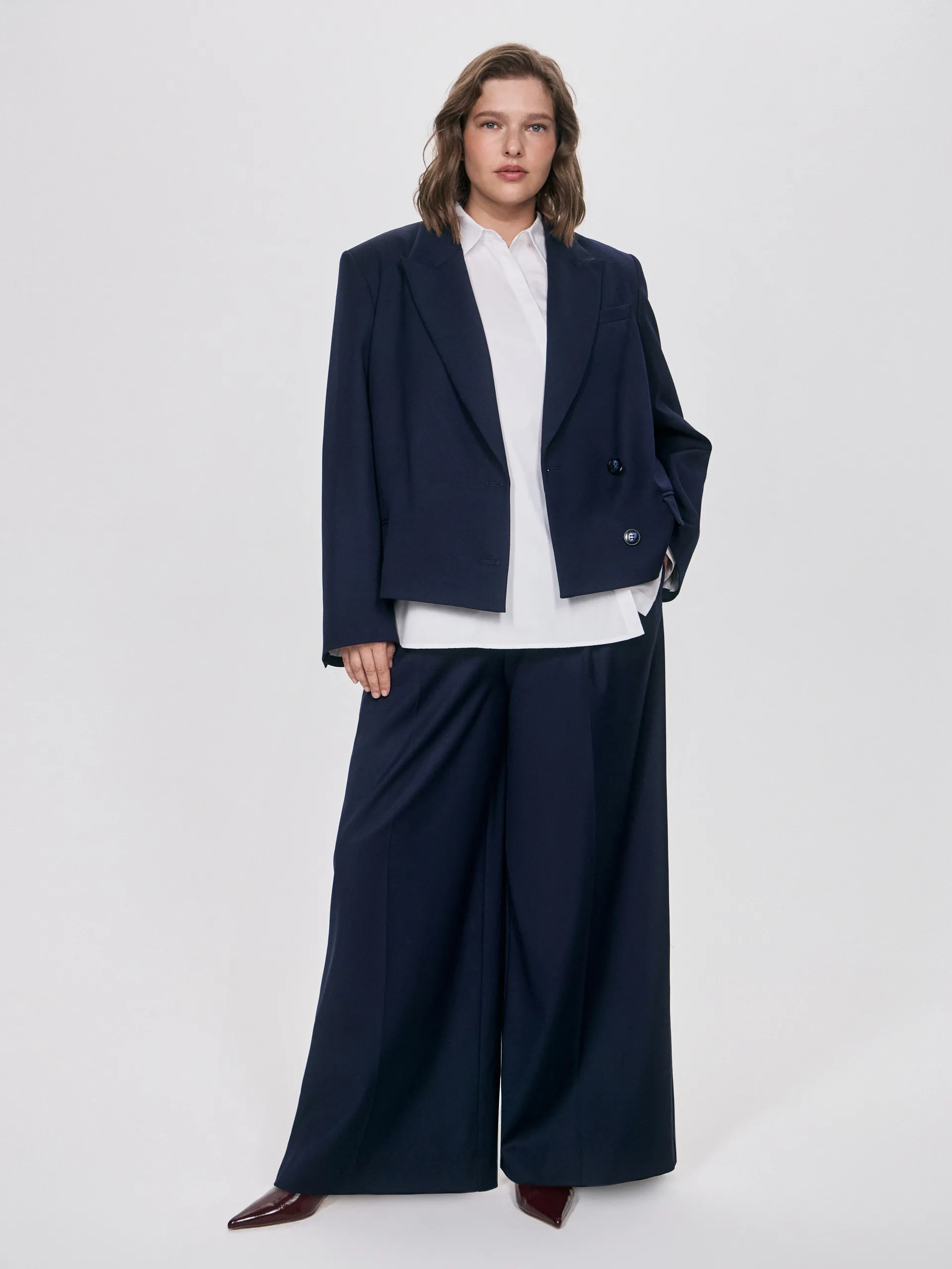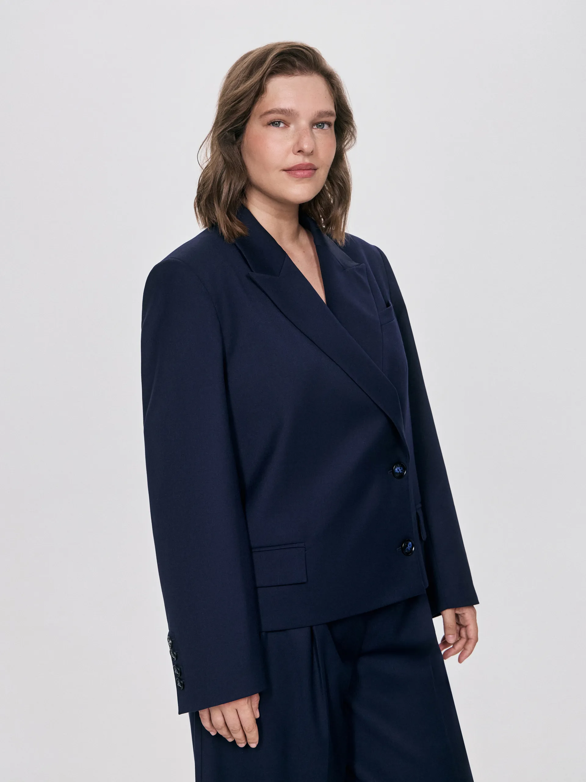Жакет Jed средней длины из линейки AP QUEEN выполнен в благородном тёмно-синем оттенке. Силуэт — мягкий оверсайз, который балансирует между строгостью и расслабленностью: он подчёркивает линию плеч, но остаётся комфортным и универсальным для разных типов фигуры. Благодаря лаконичному крою и выверенной посадке жакет легко вписывается в офисный и повседневный гардероб. Мы используем только натуральные красители и самостоятельно окрашиваем ткани по системе Pantone — поэтому оттенок получается живым, глубоким и уникальным. Рекомендуем носить с жилетом Niel, юбкой Nesto или брюками Avery — в комплекте создаётся цельный и выразительный образ